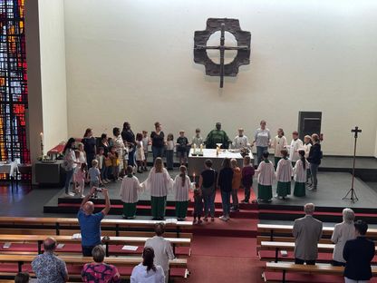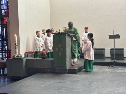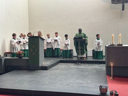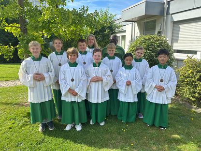Erfahrene Messdiener kleideten die "Neulinge" während des Gottesdienst ein und nahmen sie in die Schaar der Messdiener mit auf. Die Gottesdienstbesucher begrüßten die FÜNF mit anhaltendem Applaus.